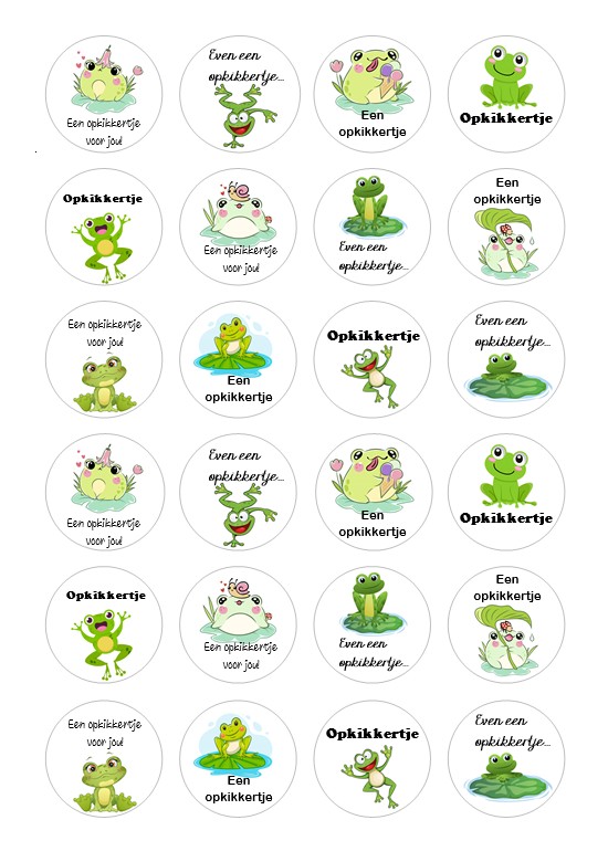 24 ronde kikker stickers van 4 cm